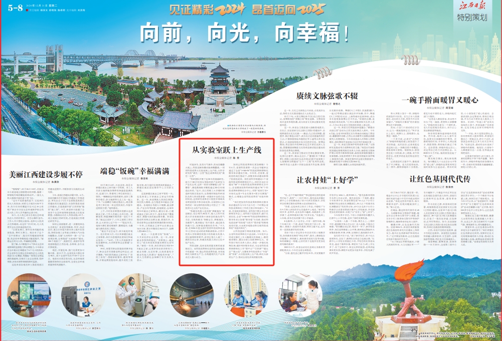 时值深冬,虽然天气寒冷,然而在赣鄱大地上,科技创新如潮水般奔腾翻涌,一项项科技成果从实验室跃上生产线,从科学研究的“最先一公里”抵达成果转化的“最后一公里”。