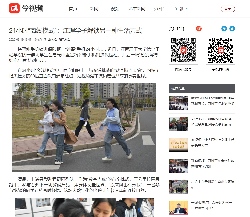 信息工程学院的一群大学生在晨光中坚定将智能手机锁进保险柜,开启一场“暂别屏幕·拥抱晨曦”特别行动。