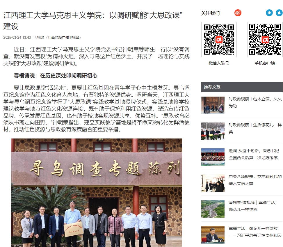 马克思主义学院党委书记钟明荣等师生一行以“没有调查,就没有发言权”为精神火炬,深入寻乌这片红色沃土,开展了一场理论与实践交织的“大思政课”建设调研活动。