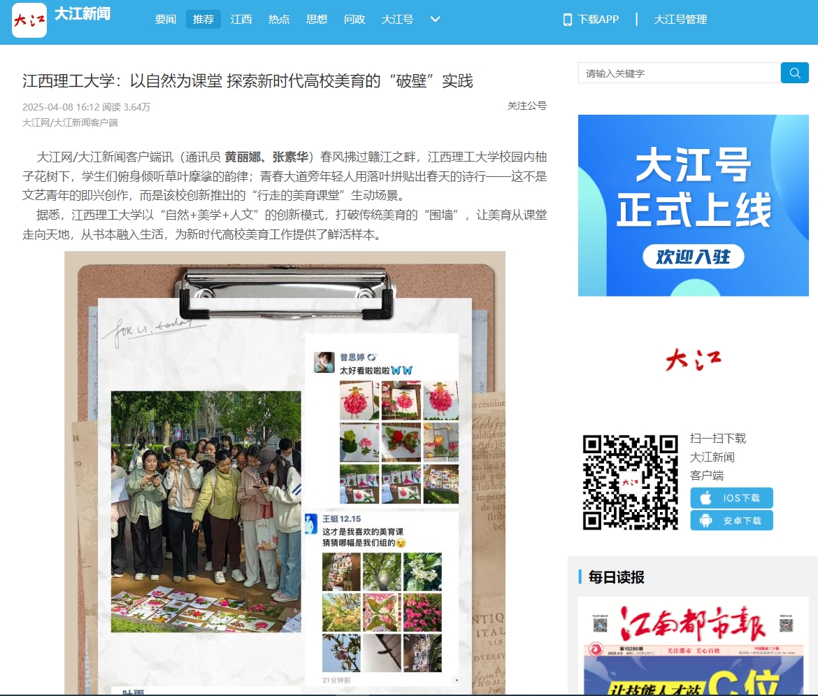 《大江网》:抖阴 :以自然为课堂 探索新时代高校美育的“破壁”实践