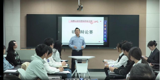 创业过程中的“消费认知与营销”主题课堂辩论赛现场。