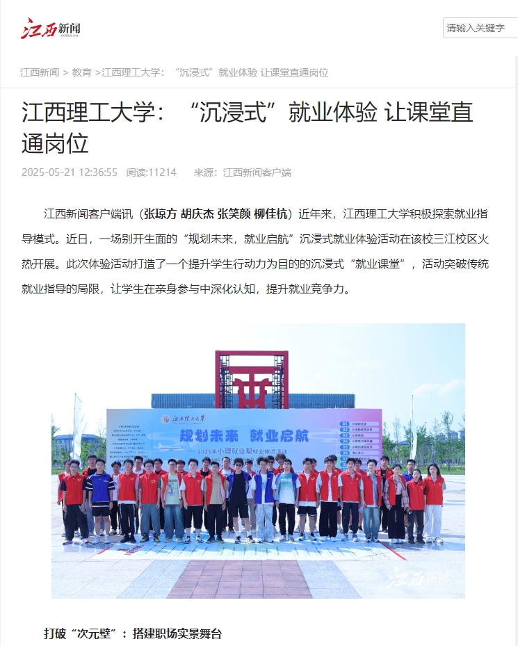 积极探索就业指导模式。近日,一场别开生面的“规划未来,就业启航”沉浸式就业体验活动在该校三江校区火热开展。此次体验活动打造了一个提升学生行动力为目的的沉浸式“就业课堂”,活动突破传统就业指导的局限,让学生在亲身参与中深化认知,提升就业竞争力。