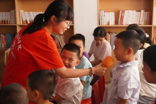 “上课啦上课啦!”在接下来的“防溺水小课堂”中,团队成员彭昕给孩子们开启了紧张刺激的“知识抢答”环节。“天气很热,你能不能偷偷跑去河边玩水呀?”“不能!”孩子们响亮地回答,小脑袋摇得像拨浪鼓。“如果看到小伙伴落水了,我们该怎么办?”“大声喊救命!”“找大人!”“扔救生圈!”孩子们争先恐后地回答。防溺水的关键点以及实用的自救技能,被实践队成员彭昕像玩游戏“通关”一样教给了孩子们。