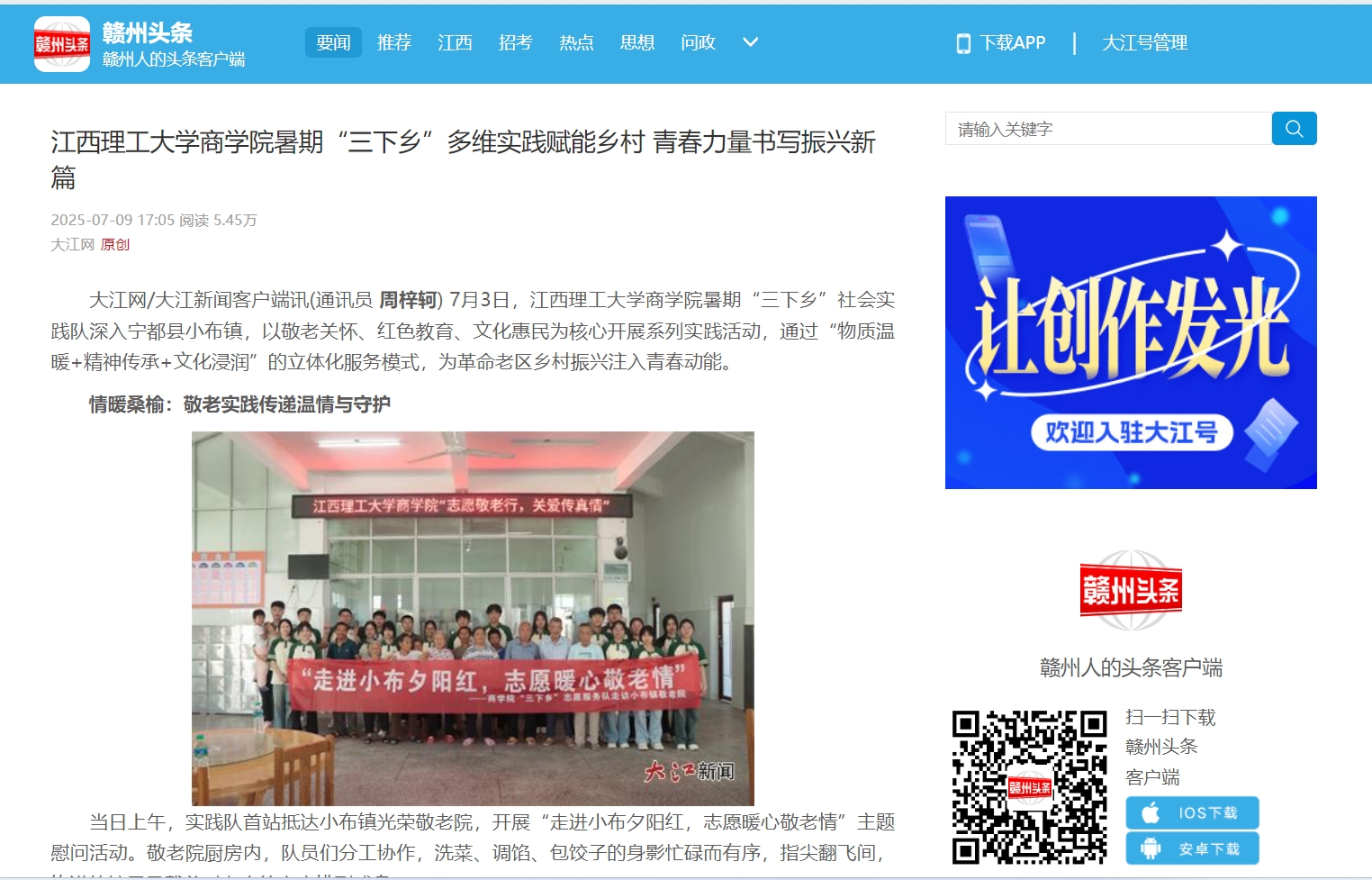 商学院暑期“三下乡”社会实践队深入宁都县小布镇,以敬老关怀、红色教育、文化惠民为核心开展系列实践活动,通过“物质温暖+精神传承+文化浸润”的立体化服务模式,为革命老区乡村振兴注入青春动能。
