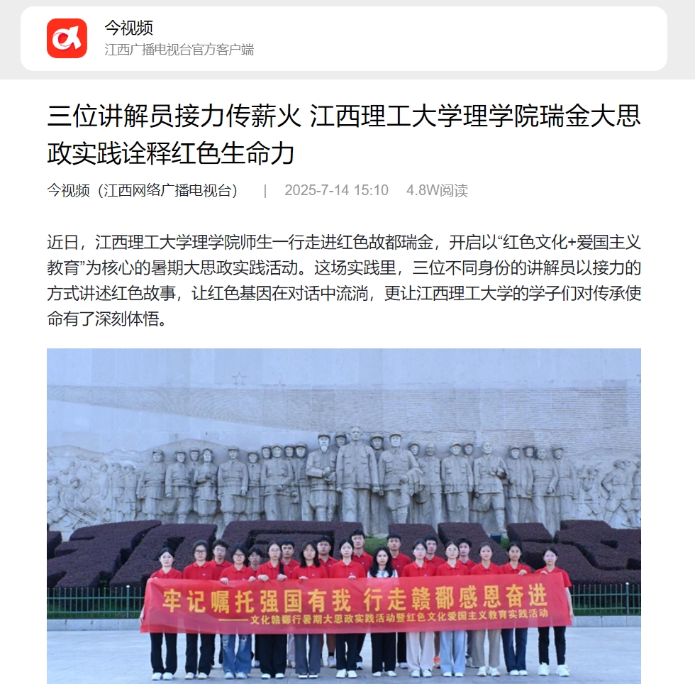 的这场大思政实践,不仅是一次爱国主义教育的行走课堂,更让红色传承有了具体的模样:它藏在“红孩子”的童声里,落在青年学子的接力中,扎根在守土人的坚守上,诠释了红色基因最动人的生命力。(张琼方、唐朝、胡庆杰)