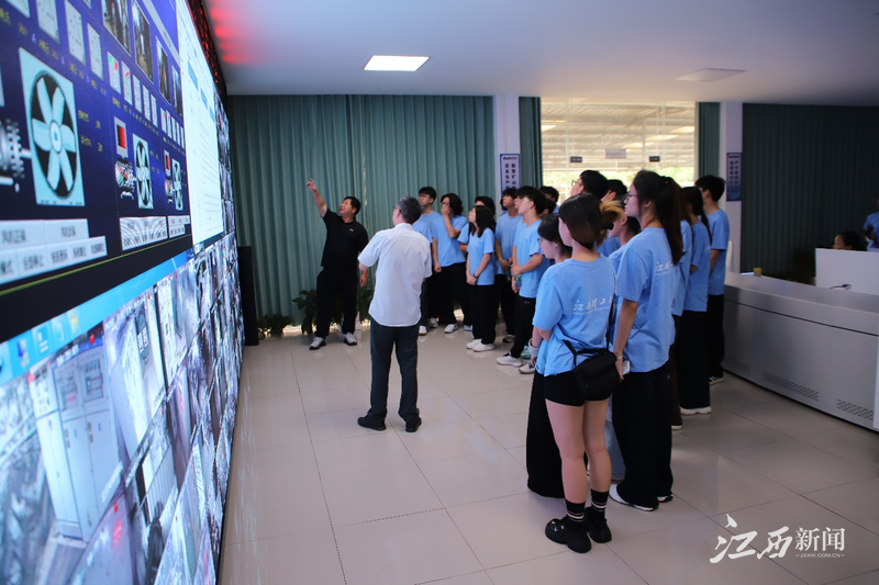 在石雷钨矿智能化控制中心,实践队员们见证了“5G+工业互联网”。实时数据屏上,井下人员定位、环境监测、设备运维等现场画面、数据指标等跃然眼前,技术人员说道:“过去全靠手工还不一定准确,现在一台电脑全搞定,安全又高效!”在漂塘钨矿,队员们深入矿井之下,在真实的作业环境中,切身体验现代矿工的工作状态,感受科技对安全生产带来的深刻变革。