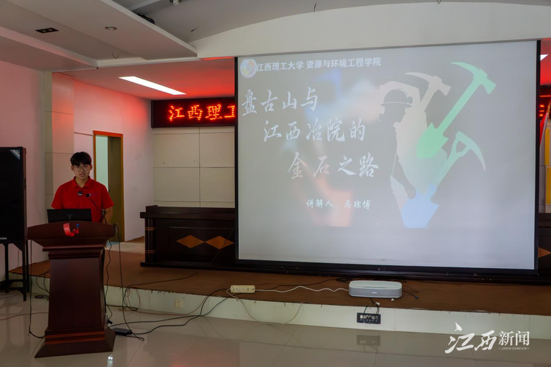 ▲马琮博讲述学校与江西矿业血脉相连的育人篇章