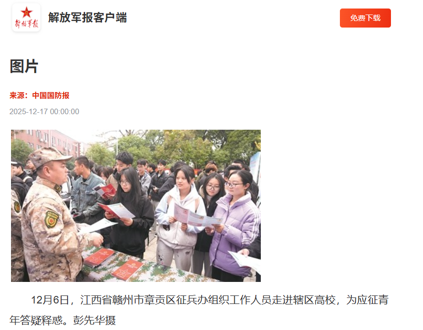 上一条:《新华网》:江西理工大学:党建引领 架起文化出海新桥梁 下一条:《中国国防报》:图片-江西省赣州市章贡区征兵办组织工作人员走进辖区高校