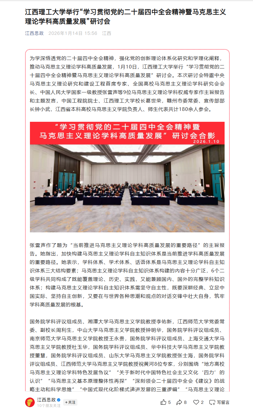 为学深悟透党的二十届四中全会精神,强化党的创新理论体系化研究和学理化阐释,推动马克思主义理论学科高质量发展,1月10日,抖阴