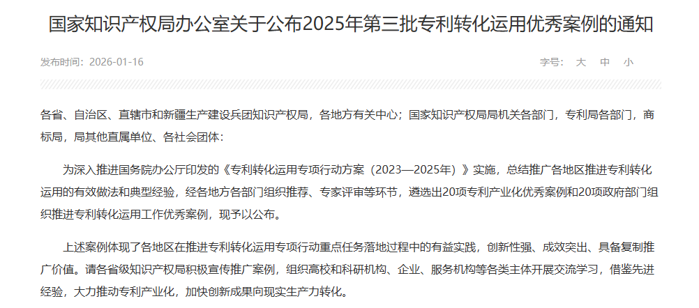 近日,国家知识产权局公布2025年第三批专利转化运用优秀案例(专利产业化优秀案例)名单,共20项入选。抖阴