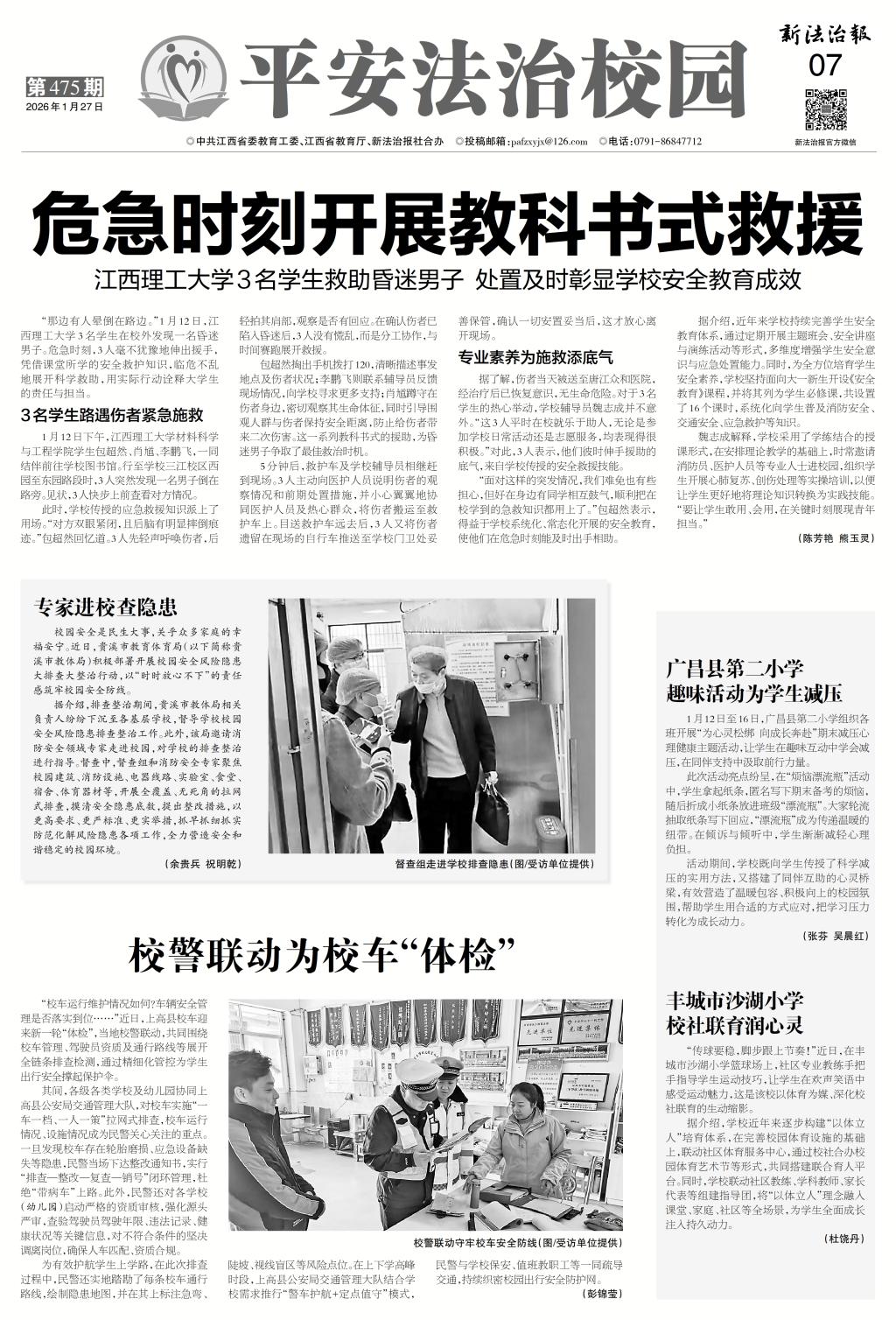 “面对这样的突发情况,我们难免也有些担心,但好在身边有同学相互鼓气,顺利把在校学到的急救知识都用上了。”包超然表示,得益于学校系统化、常态化开展的安全教育,使他们在危急时刻能及时出手相助。