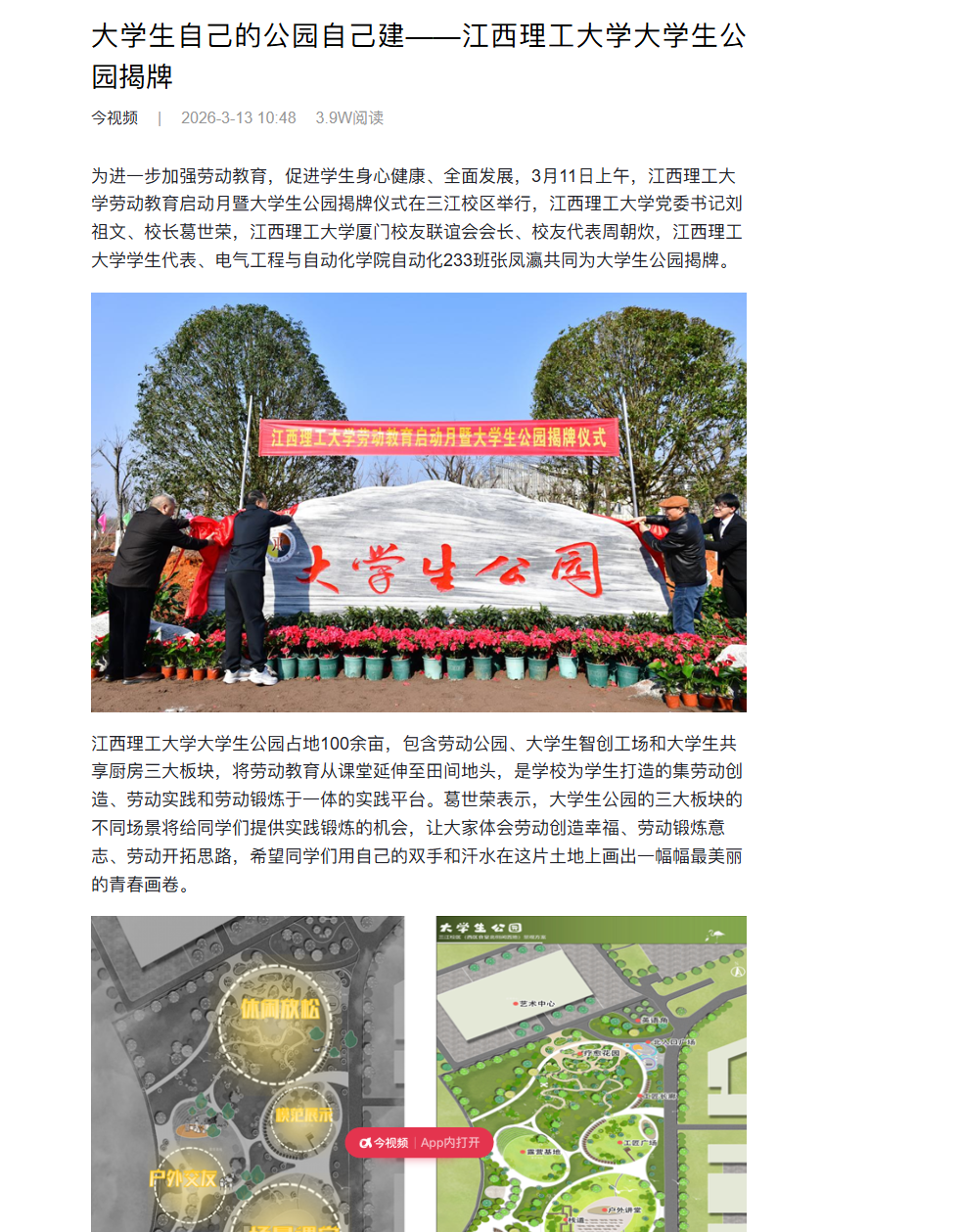 劳动教育启动月暨大学生公园揭牌仪式在三江校区举行,抖阴