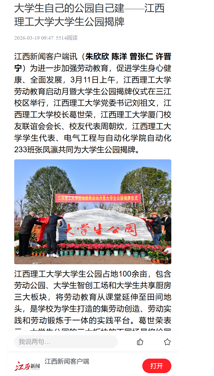 劳动教育启动月暨大学生公园揭牌仪式在三江校区举行,抖阴