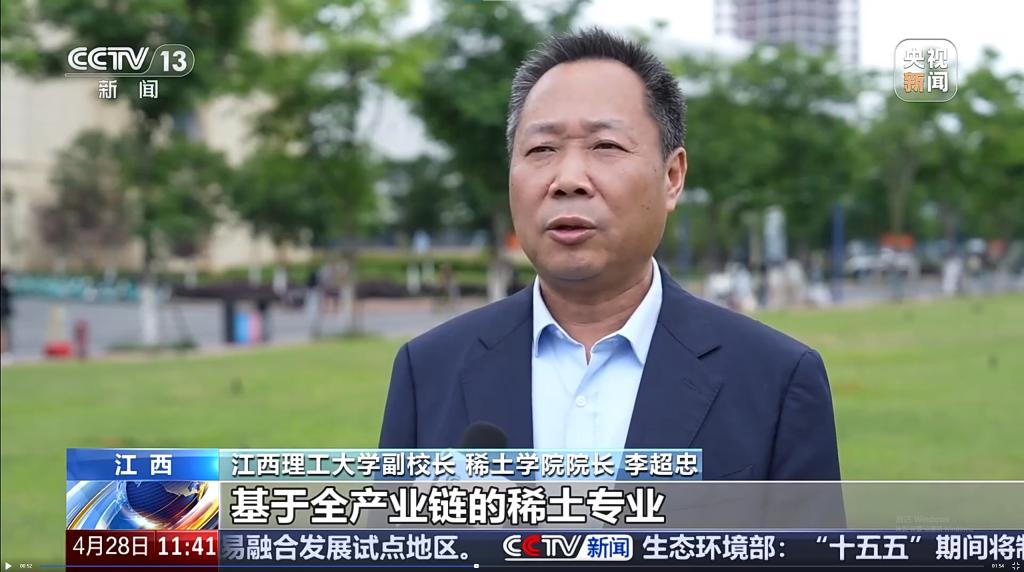 央视新闻在4月28日午间的《新闻直播间》栏目中重点采访了抖阴 学术副校长、稀土学院院长李超忠并深度解读了新专业。