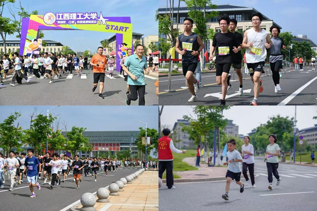 校级总决赛还设置“奔跑吧江理”校园健康跑活动,分别有“薪火传承”5.8千米路线和“拾月启航”10.25千米路线两个赛道。参与人员不仅有青年学生、教职工代表,更有众多教工家属参与其中,在既定的校园健康跑路线里,师生并肩、老少同行、相伴奔跑,尽情释放青春与活力。