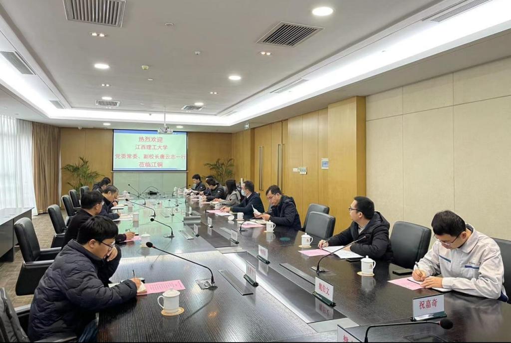 科技创新面向经济主战场的能力,1月9日,校党委常委、副校长唐云志带队走访江西铜业集团有限公司,集团副总经理涂东阳热情接见了唐云志一行。校科学技术处、资源与环境工程学院、冶金工程学院、材料科学与工程学院、化学化工学院相关负责人和青年博士教师参与活动。