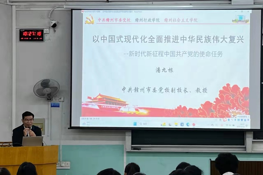 深入推进“一课多师”教学改革。3月13日,学校特邀中共赣州市委党校副校长潘九根教授来抖阴
