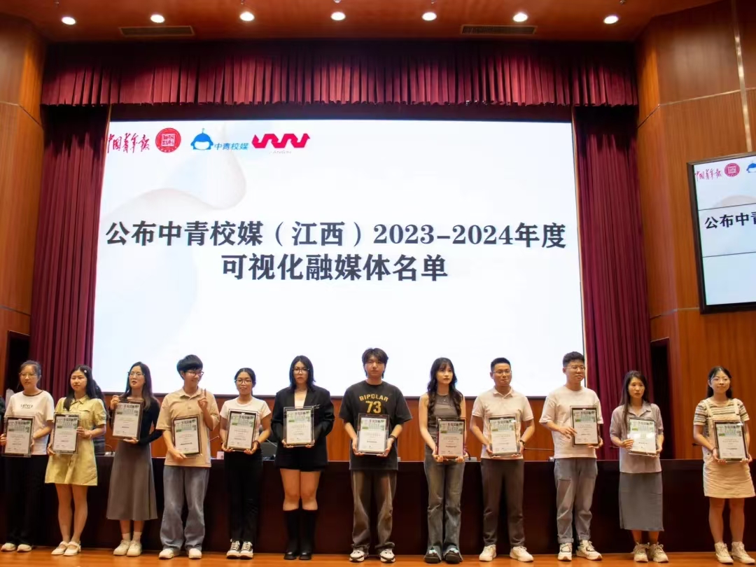 本网讯 近日,由中国青年报社、中青校媒(江西)(以下简称“江西校媒”)组织的2023-2024年度校园媒体交流会暨换届大会在江西财经大学蛟桥园校区举行。会上公布了中青校媒(江西)2023-2024年度可视化融媒体巡展年度代表名单,抖阴