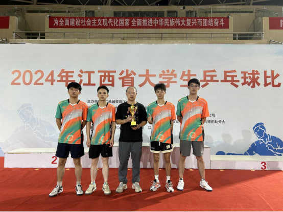 本网讯 5月26日至5月31日,抖阴 体育与艺术学院李凯老师带队参加2024年江西省大学生乒乓球比赛,抖阴 学子组成的代表队不畏强手、奋勇拼搏,最终获得本科甲组男子团体亚军、单打季军、男子双打第八的优异成绩。李凯老师获评“优秀教练员”。
