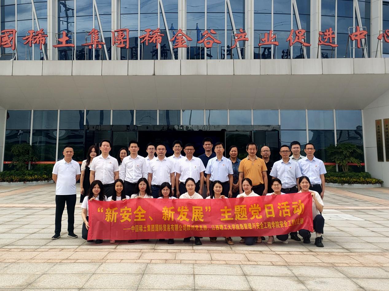 本网讯 6月19日,应急管理与安全工程学院安全工程党支部前往中国稀土集团稀金谷产业促进中心,与中国稀土集团国际贸易有限公司赣州党支部联合开展“新安全、新发展”主题党日活动。此次活动旨在深入学习贯彻党的二十大精神和习近平总书记关于安全生产的重要论述,推动创新产教融合校企“双元”育人模式。
