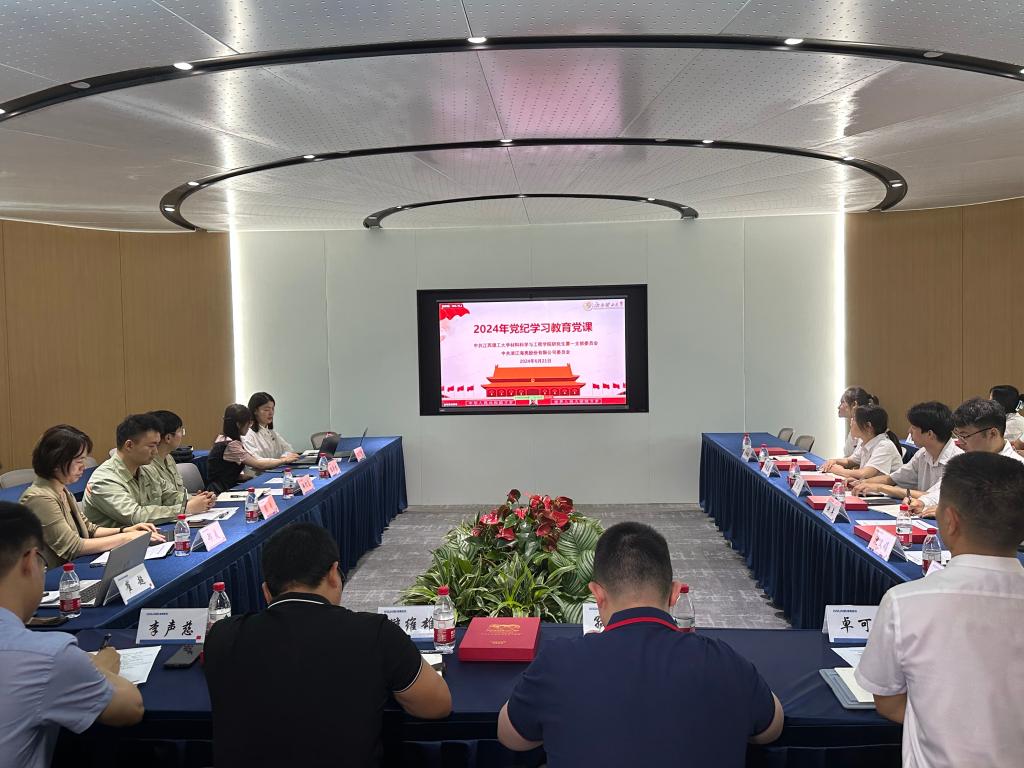 “共上一课”。海亮股份有限公司行政党支部组织委员、纪检委员桂荷香从党群建设、工作赋能、党群荣誉、工作开展情况四个方面介绍了公司以党建促发展的工作模式;研究生第一党支部书记、金属材料系主任李声慈介绍了支部概况、特色工作与成效。研究生第一党支部副书记沈文娟为在座的党员上了一堂党纪学习教育党课,领学了习近平总书记关于党纪学习教育的重要讲话和重要指示精神。海亮股份有限公司的技术骨干和材料科学与工程学院学生代表分别就各自在有色金属领域的科研情况进行了精彩的分享。