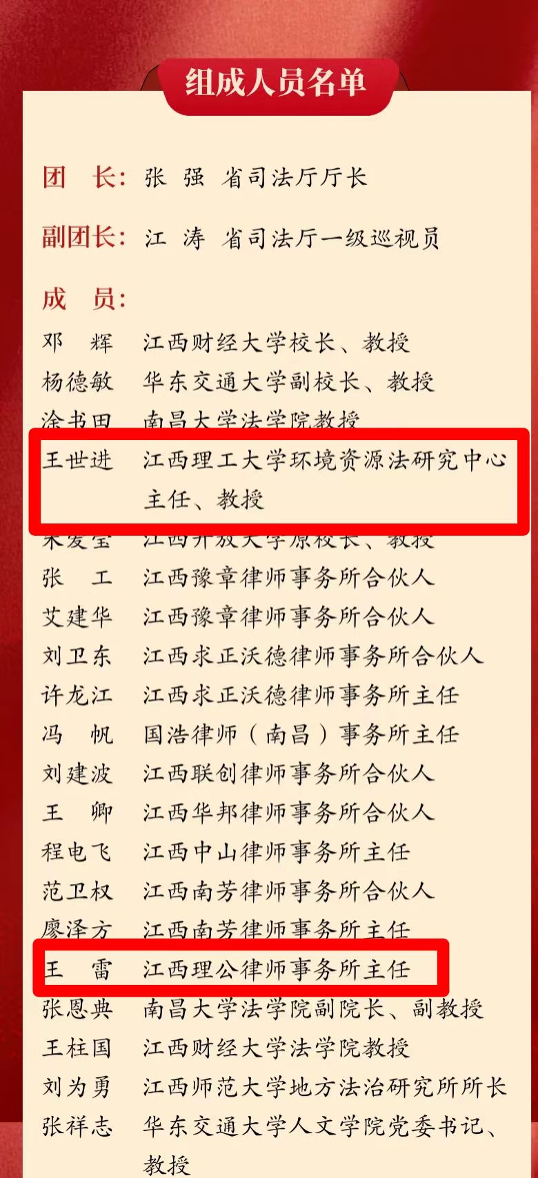 王世进教授以高度的责任感和使命感,严格履职尽责,用自己的行动诠释了自身的专业素养与敬业精神,得到了相关政府机关的充分认可。此次受聘为江西省法律顾问团队成员,王世进教授将继续充分发挥自身优势,积极参与政府相关法律决策,为政府相关工作提供法律建议,助力江西省法治建设。