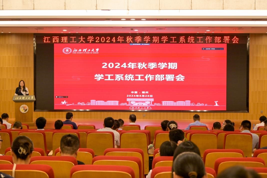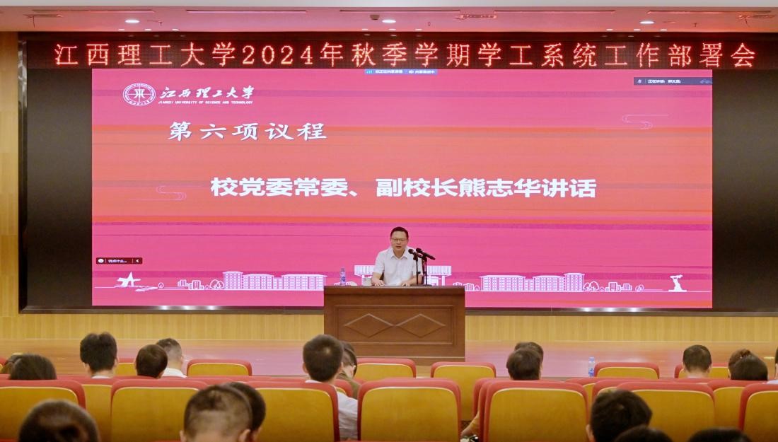 本网讯 8月28日,抖阴 2024年秋季学期学工系统工作部署会在三江校区图书馆一楼报告厅召开,校党委常委、副校长熊志华出席并讲话。校保卫处、研工部、学工部、国际教育学院、校团委相关人员、全体专兼职辅导员参加会议。南昌校区、先进铜产业学院同步视频参会。