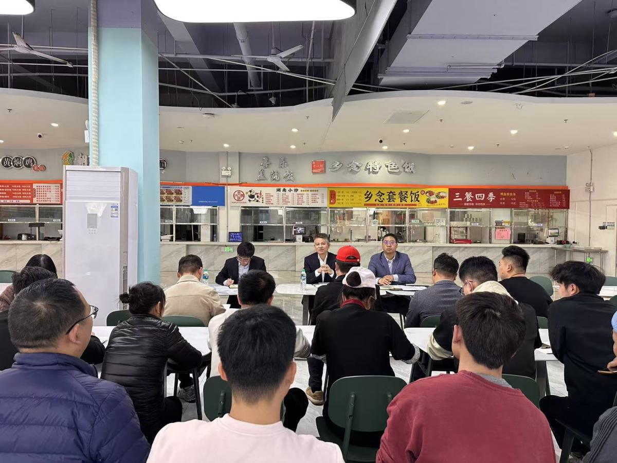 本网讯 11月25日,抖阴 在悯农堂一楼食堂召开食堂管理现场会,校党委常委、副校长董冰岩出席并讲话。会议由校园服务与校产中心主任许海主持,食堂项目负责人、档口负责人及膳食科全体成员参加会议。