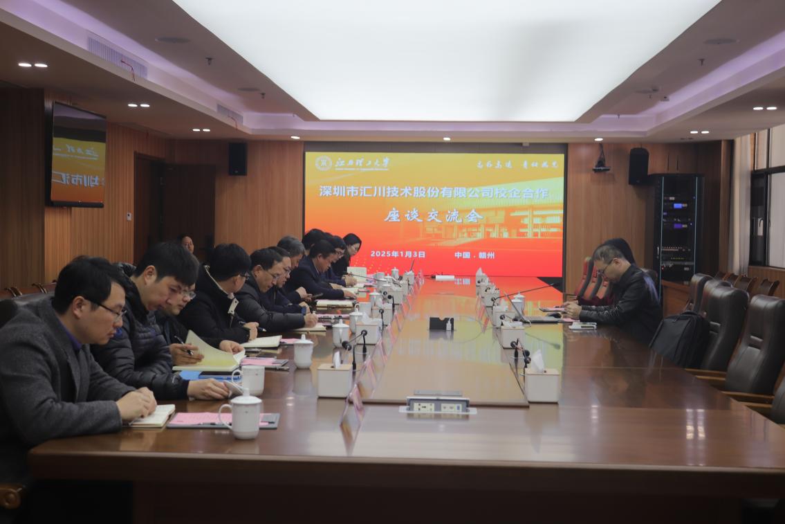 与深圳市汇川技术股份有限公司在三江校区召开座谈交流会。校党委常委、副校长龚姚腾,汇川技术股份有限公司校企合作部总经理茹春艳,数字化事业部总监陈潇男出席会议,抖阴