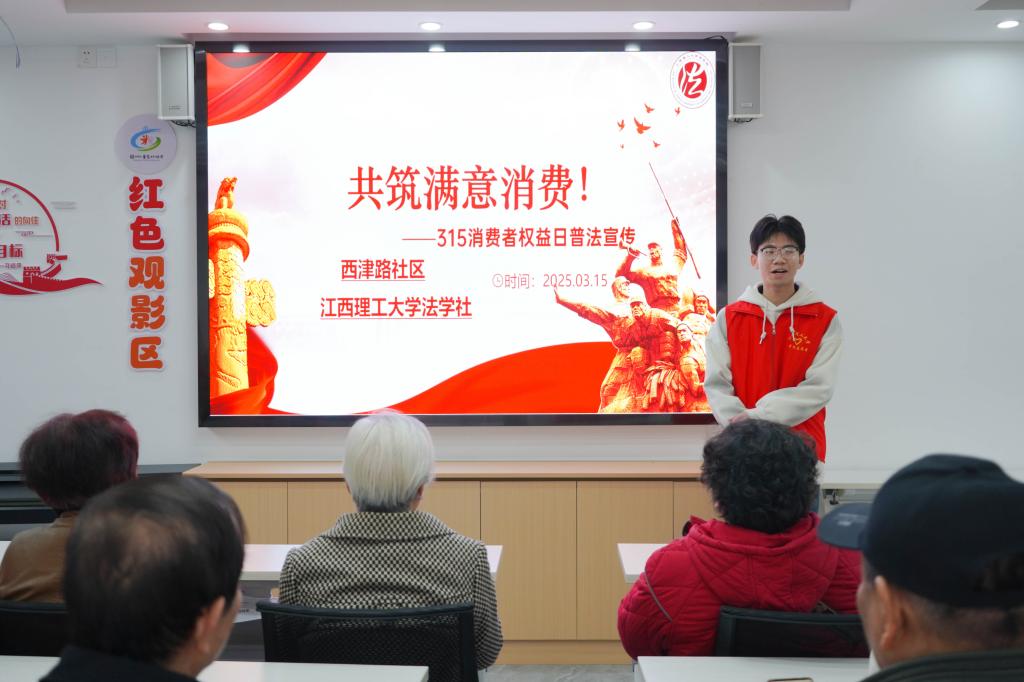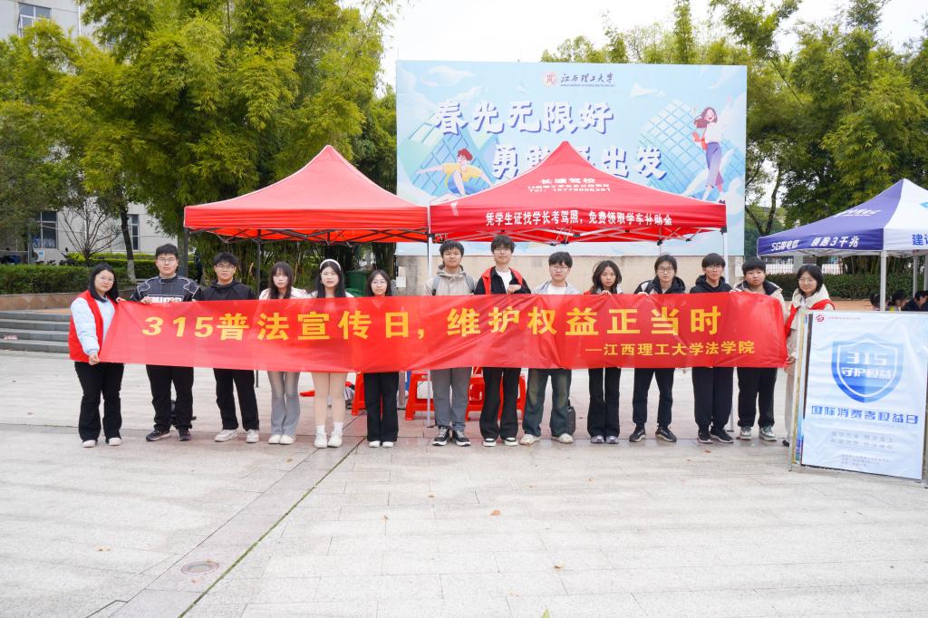 法学院于3月11日至16日在红旗校区文化广场、下壕塘社区、西津路社区、红环路社区等地开展以“诚信消费,法律护航”为主题的“3•15”消费者权益保护日普法宣传活动,引导大家通过法律武器维护自身合法权益。