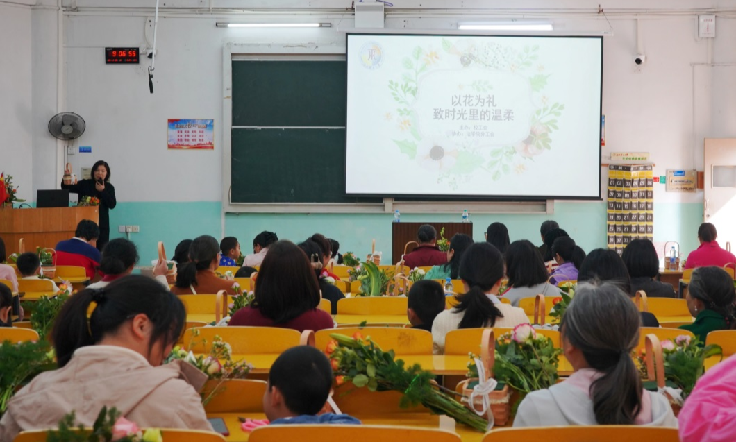 活动现场布置温馨雅致,各类鲜花及插花工具整齐摆放。朱长凤从花材特性、色彩美学与造型艺术等方面进行专业讲解,现场示范百合、蓬莱松、洋桔梗等花材的创意组合技法。女教职工们认真聆听,随后纷纷动手实践,将普通花枝巧妙组合成独具匠心的艺术作品。