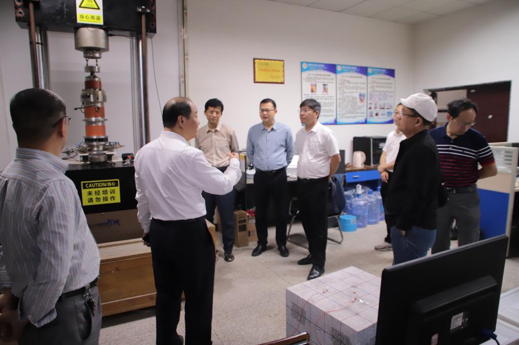 在实地考察环节,专家组查看了相关实验室,了解了项目开展的基础性研究和研发的声发射、位移监测预警成果。
