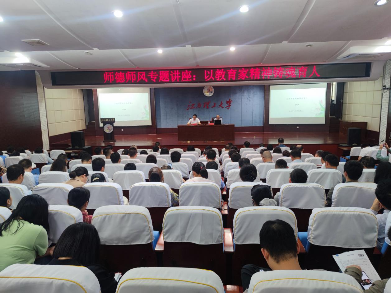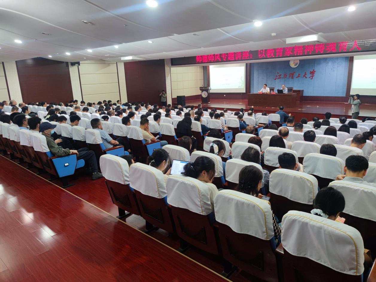 在南昌校区图书馆报告厅举办师德师风专题报告会,邀请“全国教学名师”“全国师德标兵”“时代楷模”“最美奋斗者”“全国道德模范”“全国优秀教师”、大连海事大学曲建武教授作《以教育家精神铸魂育人》专题报告。校党委常委、副校长、南昌校区管委会主任董冰岩出席,南昌校区全体教职工参会。会议由能源与机械工程学院党委书记饶先发主持。