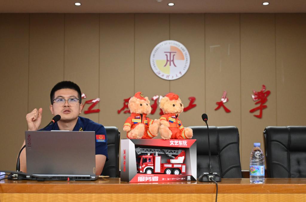 针对图书馆、教学楼等场所安全,胡望林明确四要点:认识危害性,警惕隐患;熟悉逃生通道,做到有备无患;遵守防火规定,不违规用明火、堵通道;学会判断应对,能扑救则用灭火器,不能则逃生,无法逃生时 “张关理待”(关门窗、堵缝隙待救援)。在火灾逃生自救方面,胡望林围绕“火灾逃生四不要”讲解:不惊慌失措,保持镇定判断火情,提前熟悉疏散通道;不随意开门,室外着火门烫时绝不开门,用浸湿被褥堵门缝并泼水降温;不贪恋财物,具备逃生条件时立即弯腰低姿撤离,避免错过最佳时机。