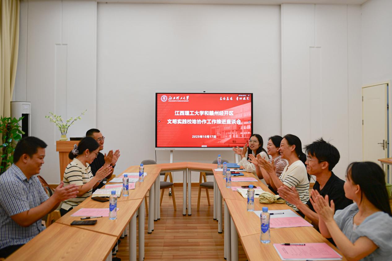 三实楼心理咨询中心会议室召开文明实践校地协作工作推进座谈会。校党委宣传部副部长钟峻燕、心理健康教育中心主任郭修凤出席会议,赣州经开区相关工作人员及抖阴