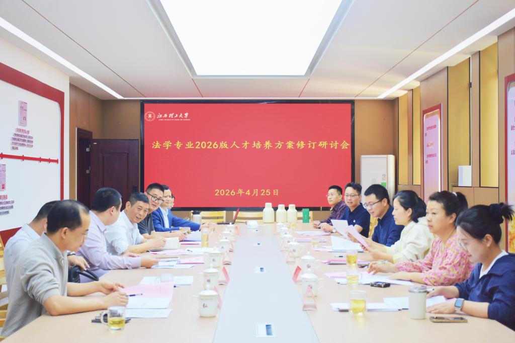 本网讯  4月25日,法学专业2026版人才培养方案修订研讨会在法学院217会议室召开。本次研讨会特邀赣州市中级人民法院执行局副局长郭敏、兴国县人民法院副院长王承强、赣县区人民法院王母渡法庭庭长刘君绮、赣州市章贡区人大常委会法工委副主任刘悦、芦溪县人民检察院第一检察部主任李梁荣、江西公仁律师事务所高级合伙人刘星林、江西公仁律师事务所副主任陈晖晖、江西虔嘉律师事务所主任朱海强、江西理公律师事务所合伙人易千等法律实务界专家参会指导。法学院院长项波、党委副书记欧阳鹏、副院长张奇出席会议,会议由院长项波主持。