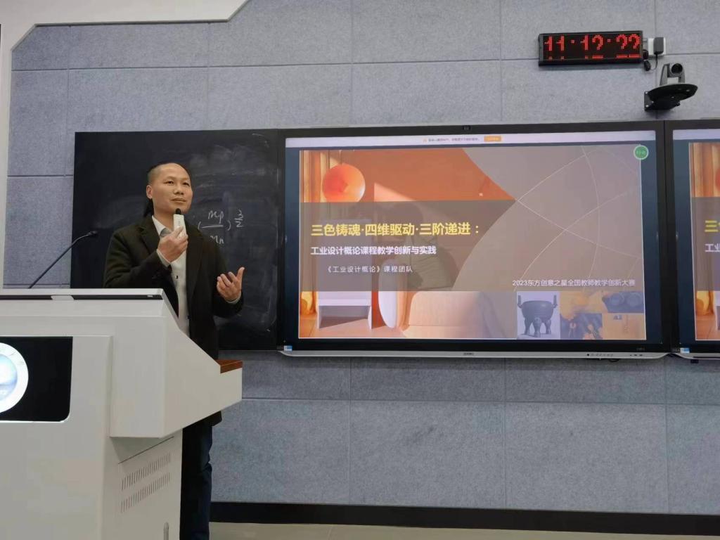 “问渠那得清如许,为有源头活水来”这一句话,形象地表达了黄金发老师在科研创新方面的敏锐洞察力和不断探索的精神。黄老师展现出了对科研的热爱和专注,他主持了18项省部级课题,他参与了6项省部级课题研究,发表了38篇学术论文。他曾获全国高校教师教学创新大赛国家级三等奖、省级特等奖,这一荣誉充分证明了他作为一位优秀教师的教学能力和创新精神。除了在科研和教学方面的卓越表现,黄金发老师还十分注重培养学生的设计动手能力。他引导学生从宏观、整体和系统的多种角度去进行创造设计,这种多元化的教学方式无疑将有助于培养学生的综合素质和创新意识。黄金发老师与政府、设计协会和企业深度合作,通过教学改革项目,结合企业行业标准和学校学科优势,培养适合新时期的设计创新型人才。他构建了“四驱三合两创一体化”产品设计创新人才教学体系,这一体系充分体现了他对人才培养的深刻理解和独到见解。