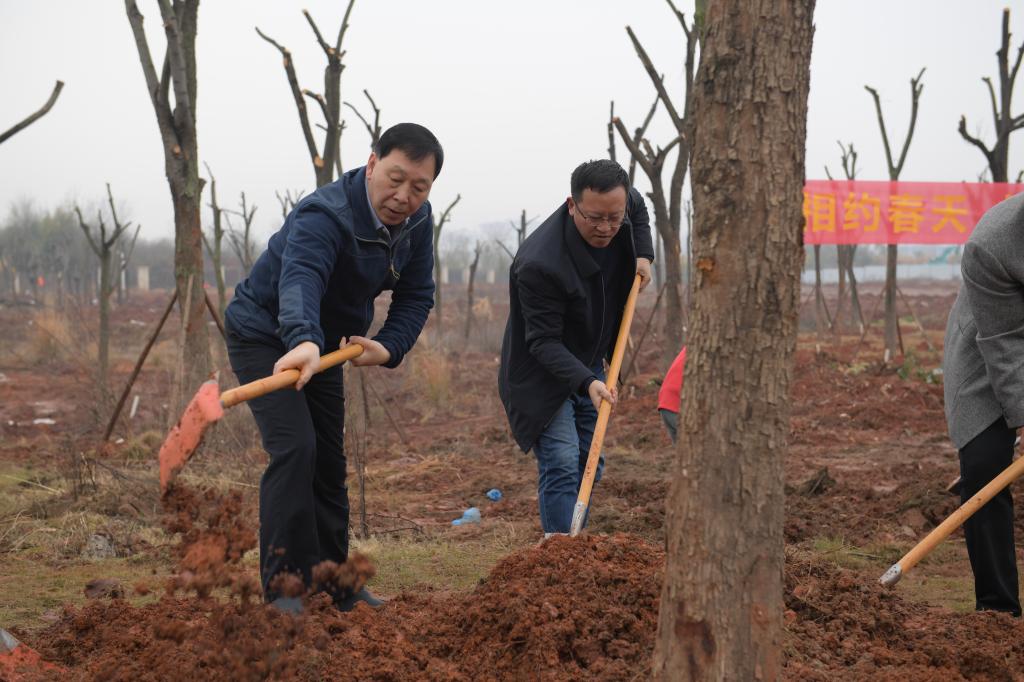 2024年新春植树活动在三江校区西面预留用地西北角绿地开展。全体在家校领导、党委常委以及师生代表参与此次活动。