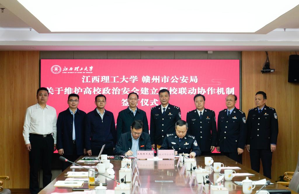 与赣州市公安局在三江校区濂溪楼2号会议室举行交流座谈会,就关于维护高校政治安全建立警校联动协作机制签订警校合作协议。赣州市政府副市长、市公安局党委书记、局长叶新,市公安局党委副书记、常务副局长严全民,市公安局开发区分局党委书记、局长黄晓明,校党委书记杨斌,校党委常委、副校长熊志华出席座谈会。赣州市公安局及抖阴
