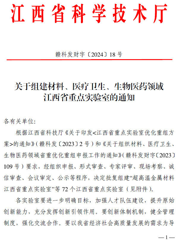 本网讯 近日,江西省科技厅下发了《关于组建电子信息、农林领域江西省重点实验室的通知》(赣科发财字〔2024〕2号)和《关于组建材料、医疗卫生、生物医药领域江西省重点实验室的通知》(赣科发财字〔2024〕18号),抖阴 申报的多维智能感知与控制江西省重点实验室、功能晶态材料化学江西省重点实验室、金属磁性材料及器件江西省重点实验室、高性能钢铁合金材料江西省重点实验室获批组建。