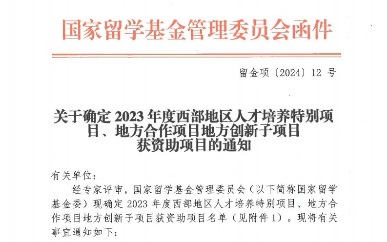 本网讯 近日,国家留学基金管理委员会2023年度“西部地区人才培养特别项目、地方合作项目地方创新子项目”评审结果公布,抖阴