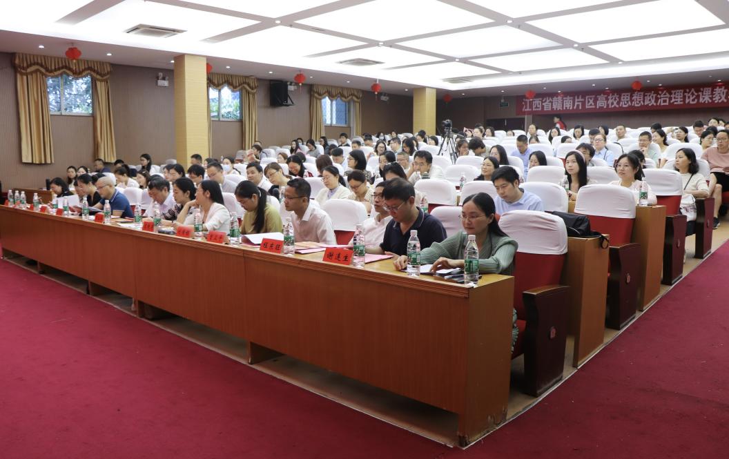 马克思主义学院、江西省高校思想政治理论课邓显超名师工作室牵头在红旗校区赵氟隆图书馆学术报告厅举办了江西省赣南片区高校思想政治理论课教学与听课研讨会。
