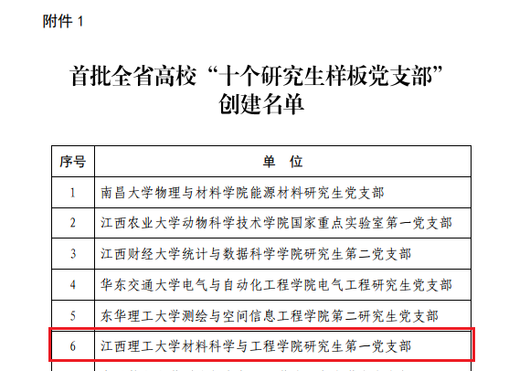 本网讯 近日,江西省委教育工作委员会公布了首批全省高校“十个研究生样板党支部”和“十名研究生党员标兵”创建(以下简称研究生党建“双十”工作)名单,抖阴
