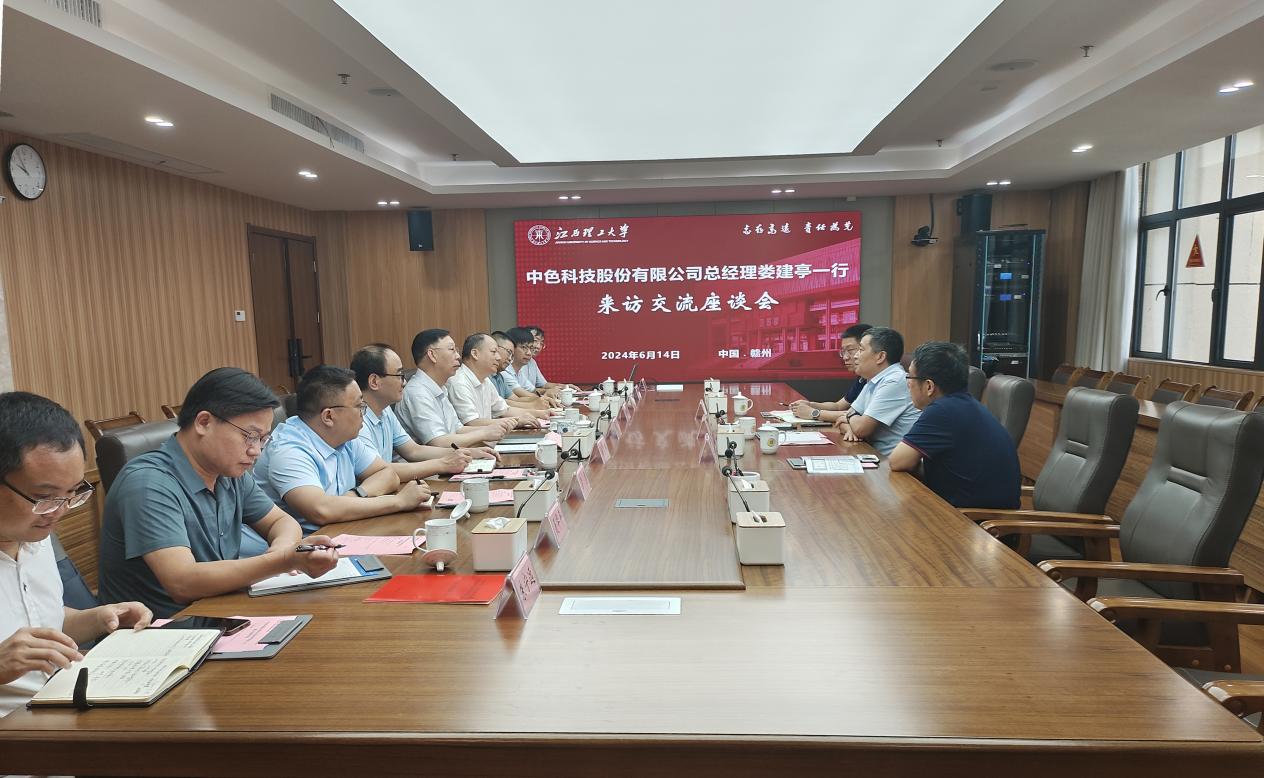 本网讯 6月14日,中色科技股份有限公司党委副书记、总经理娄建亭一行来访,校党委书记杨斌,校党委常委、副校长唐云志会见了来宾并举行座谈交流会。双方就进一步深化校企合作、加强科技创新合作力度,以党支部结对共建促进科技合作与交流等进行深入交流。