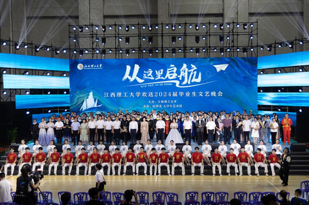 欢送2024年毕业生文艺晚会在三江校区体育馆、南昌校区大礼堂举行。在家校领导、校党委常委,各职能部门、学院负责人,教师代表及2024届毕业生现场共同观看晚会。活动预告一经发出,受到了校内师生广泛关注,线上直播观看人数近6万人次。晚会现场座无虚席,千余名师生欢聚一堂,毕业的氛围达到高潮。