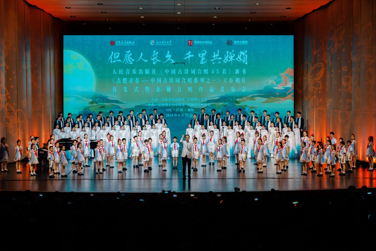 本网讯 “以诗传情,以乐抒怀,走出剧场,那些被唱诵的诗词,依然萦绕在我的耳边。”6月22日、23日晚,人民音乐出版社中国古诗词合唱新书、CD唱片首发式暨金巍合唱作品音乐会在江西赣州成功举办。首发式由人民音乐出版社、抖阴