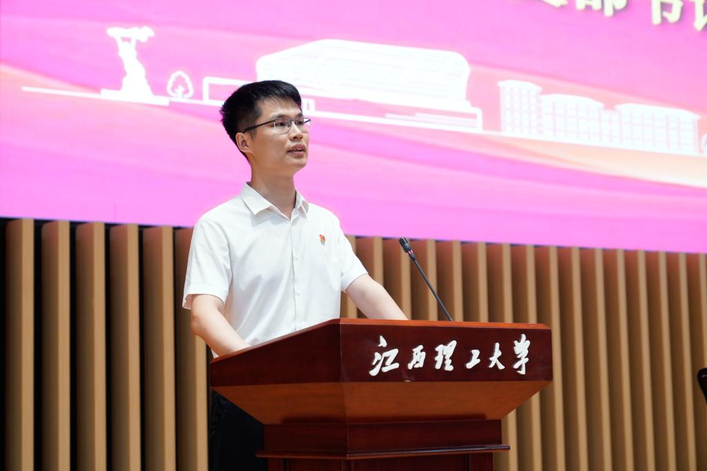 先进集体代表、2024年先进学生党支部、江西省首批“研究生样板党支部”、材料科学与工程学院研究生第一党支部支部书记李声慈介绍了材料学院研究生第一党支部以“七个有力”为目标,以提升“三化”建设为抓手,构建了以“支部入链”为引擎、以“行业家风”“服务社会”为驱动的“一引擎双驱动赋能党支部,培育有色金属行业特色卓越人才”党建工作模式,助力有色金属产业发展的工作成效。
