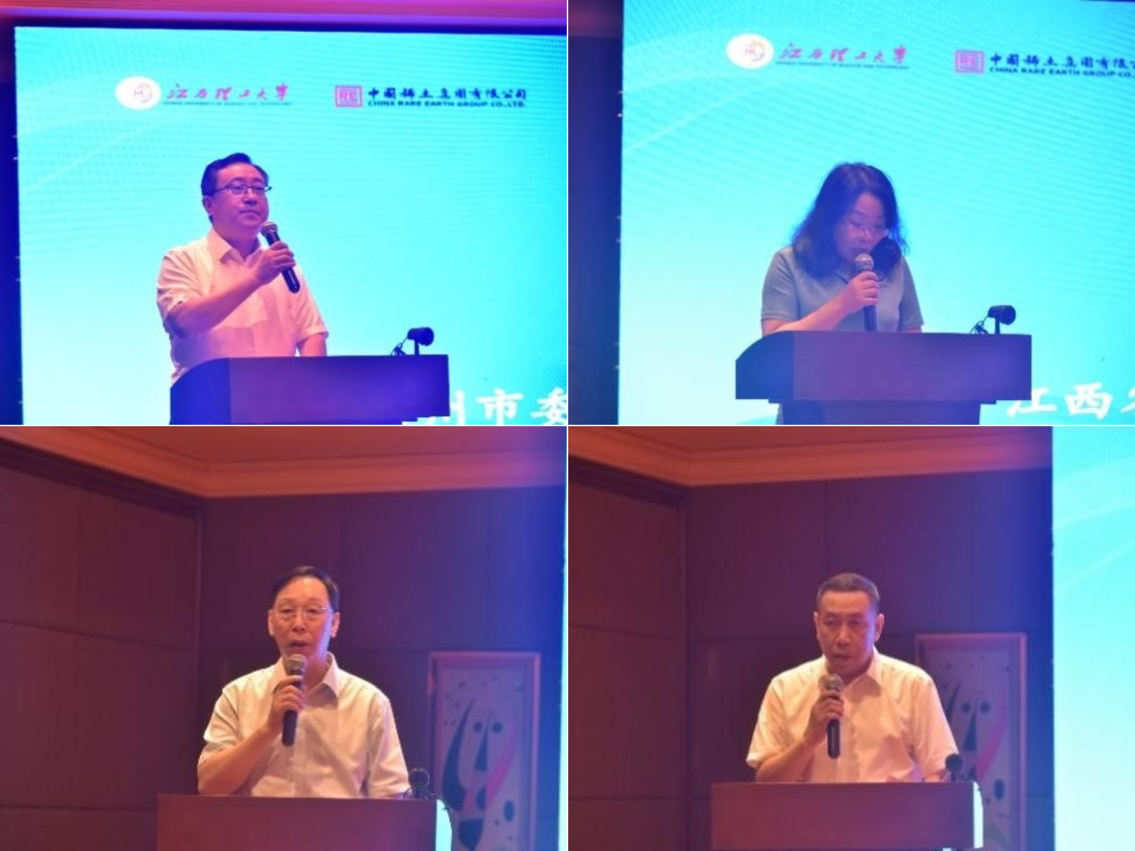 党委书记杨斌,赣州市市委常委、副市长何琦,中国稀土集团有限公司党委常委、副总经理谢志宏,中国稀土学会原理事长、中国稀土学会战略咨询委员会主任李春龙,中国稀土学会副理事长兼秘书长杨占峰,中国稀土学会副秘书长李振民,中国稀土行业协会副会长、秘书长杨文浩,江西省教育厅科技与成果管理处处长朱程红,江西工业和信息化厅科技处处长李晨炜,内蒙古自治区工业和信息化厅科技电子信息处处长彭武华,抖阴