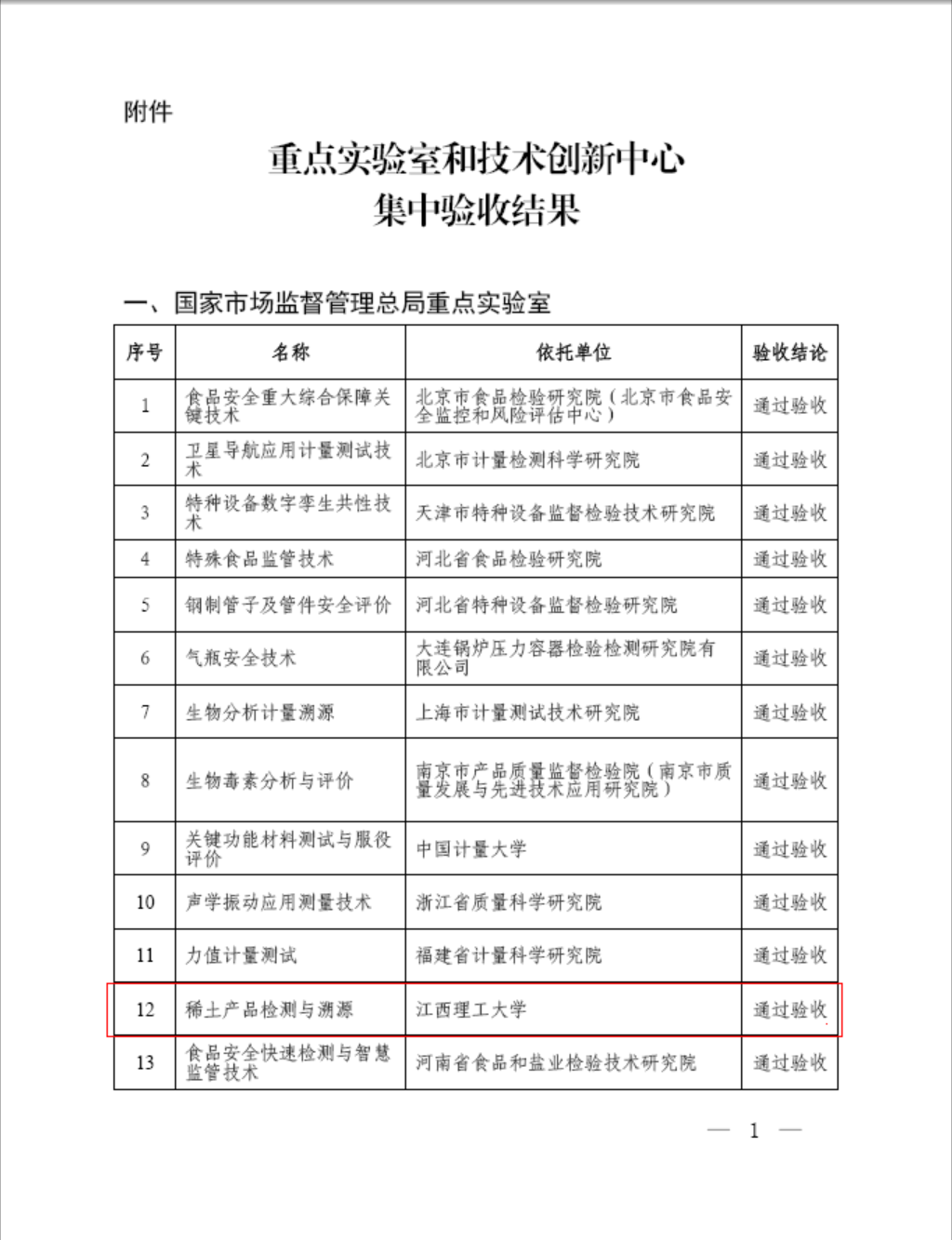 牵头建设的国家市场监督管理总局重点实验室 (稀土产品检测与溯源)(以下简称重点实验室)通过验收,并正式进入运行阶段。