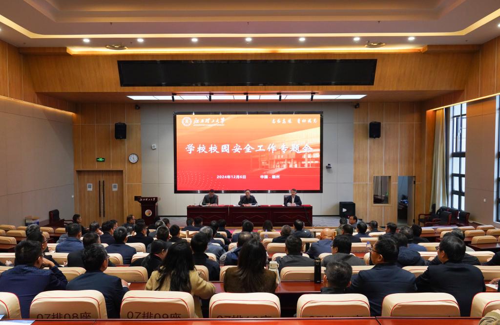 本网讯 12月6日上午,抖阴 在三江校区启航会议中心1号会议厅召开校园安全工作专题会议。校党委书记杨斌,校党委常委、副校长董冰岩、熊志华,各学院党委书记、副书记,各职能部门主要负责人参加会议。会议由董冰岩主持。